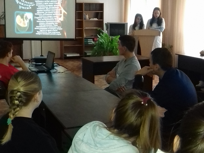 17 ноября студенты старших курсов провели для первокурсников инфосессию «Влияние табакокурения на репродуктивное здоровье» по принципу «равный обучает равного». Выступающие представили вниманию зрителей презентацию, в которой были освещены отрицательные последствия данной вредной привычки для организма человека.